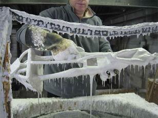 CASTINGThe mould is brought from the kiln and placed carefully in the casting area. Impurities are scraped from the surface of the molten bronze prior to pouring. Bronze which has been melted to around 1000C is then quickly poured into the cup, flowing down the hollow feeding system left by the sprues and into the cavity left by the hollow wax. Thus a positive bronze is created and as it cools, the shell weakens and can be removed in a bead blasting cabinet.